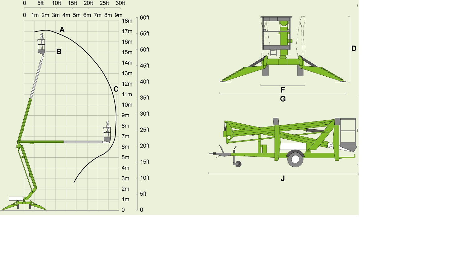 De Niftylift 170 is een elektrisch aangedreven aanhangwagenhoogwerker die een maximale hoogte van 17 meter kan halen. Daarnaast bedraagt de reikwijdte ruim 9 meter en is het platformcapaciteit 200 kilogram. De hoogwerker is uitermate geschikt voor het uitvoeren van werkzaamheden aan bijvoorbeeld het dak. Verder is de Niftylift 170 voorzien van een telescopische mast en met een eigengewicht van 2160 kg past deze heel eenvoudig achter een auto. De totale lengte is 6,20 meter en de breedte tijdens de werkzaamheden is 4,4 meter.